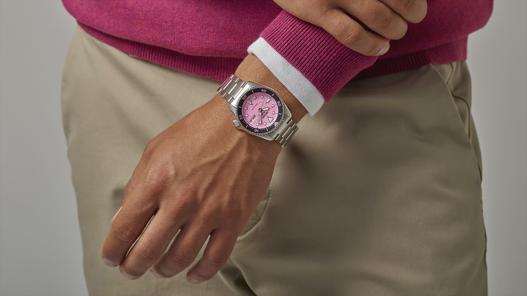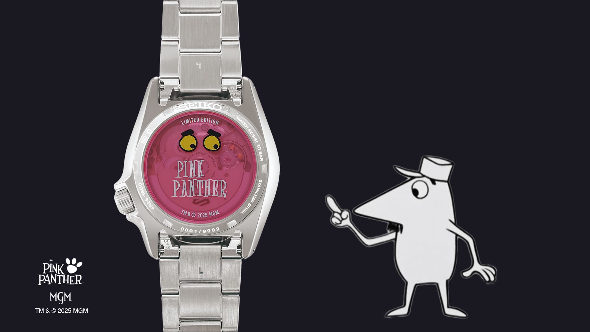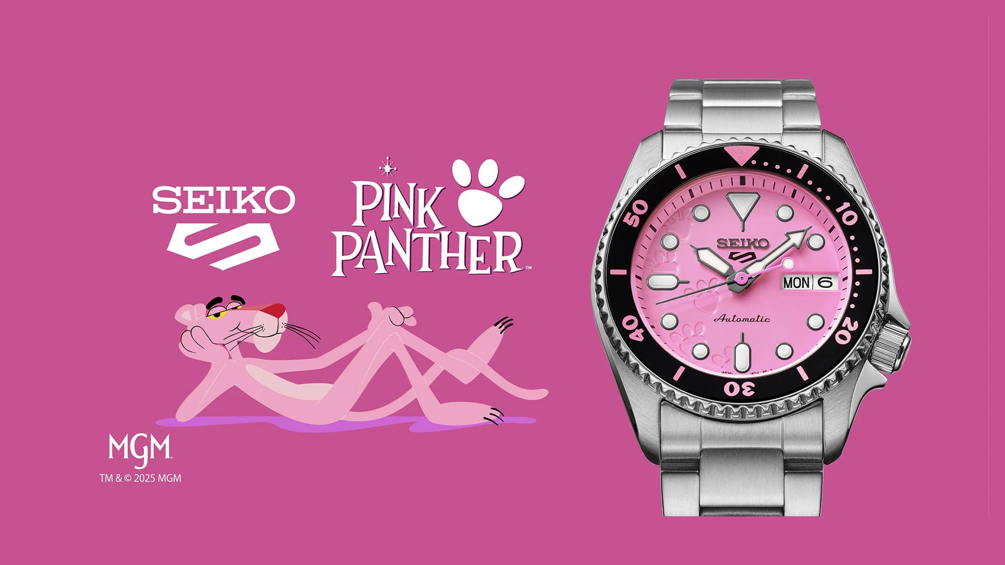 Minden idők egyik legkedveltebb karaktere a kedves, ravasz párduc, aki nem mellesleg rózsaszínben pompázik. A kedvenc időtöltéseinek egyike, hogy ellenfeleit bosszantva rózsaszínre fest mindent, de néha azért egy Oscar-díjat is elfogad. A rajzasztalról lelépve most egy Seiko 5 Sports modellen tűnik fel Pink Panther, most csak egy limitált kiadás erejéig az év legszínesebb modelljén.