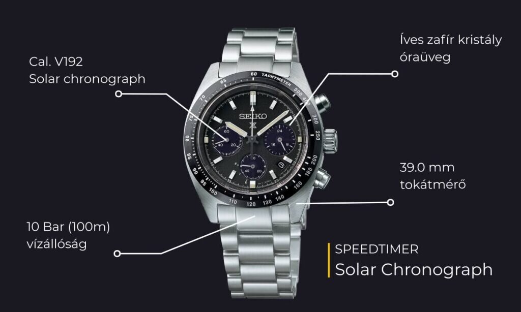 A sportos Speedtimer Solar Chrono-k kvarc szerkezete egy zöldebb jövő megvalósítását segíti a fény energiájának hasznosításával. Az órákban dolgozó V192 jelzésű kaliber segédszámlapjai kijelzik a másodperceket, a napszakot, a stopper másodperc gyűjtőjét és a járástartalékot is, emellett pedig havi +/-15 másodperces pontossággal kényeztetik el viselőjüket. Teljes feltöltés esetén akár 6 hónapon keresztül tettrekészek, még akkor is, ha közben a fiók mélyére kerülnek, ennyi ugyanis a szerkezet gyár által garantált járástartaléka.