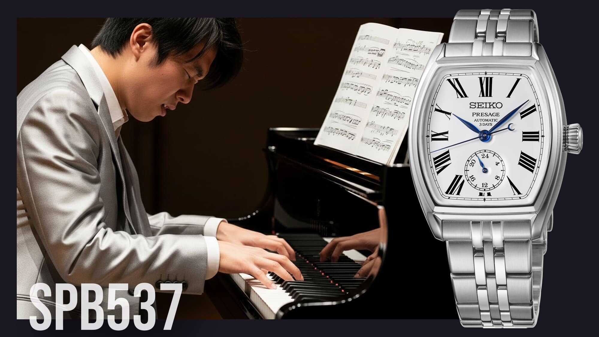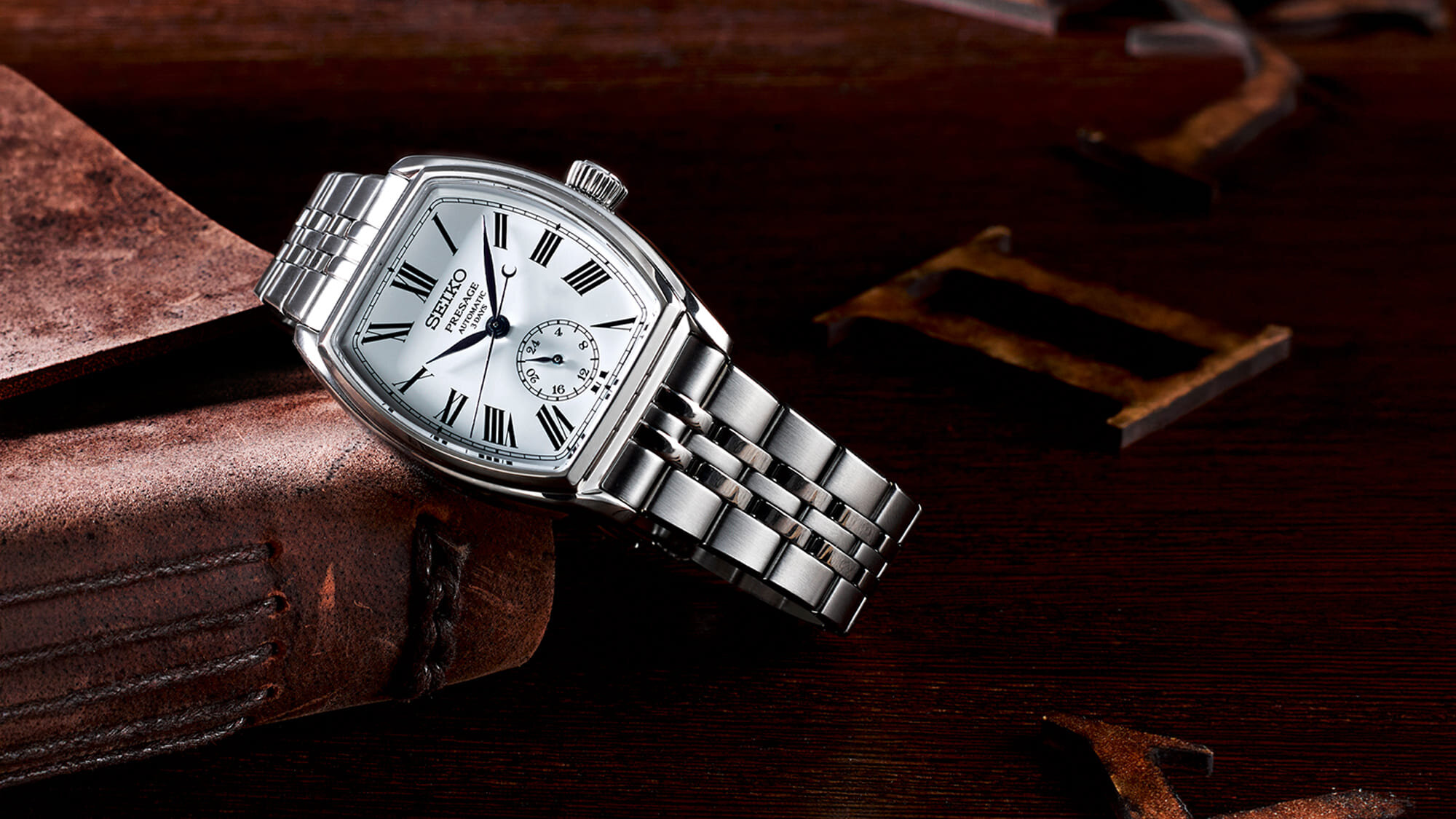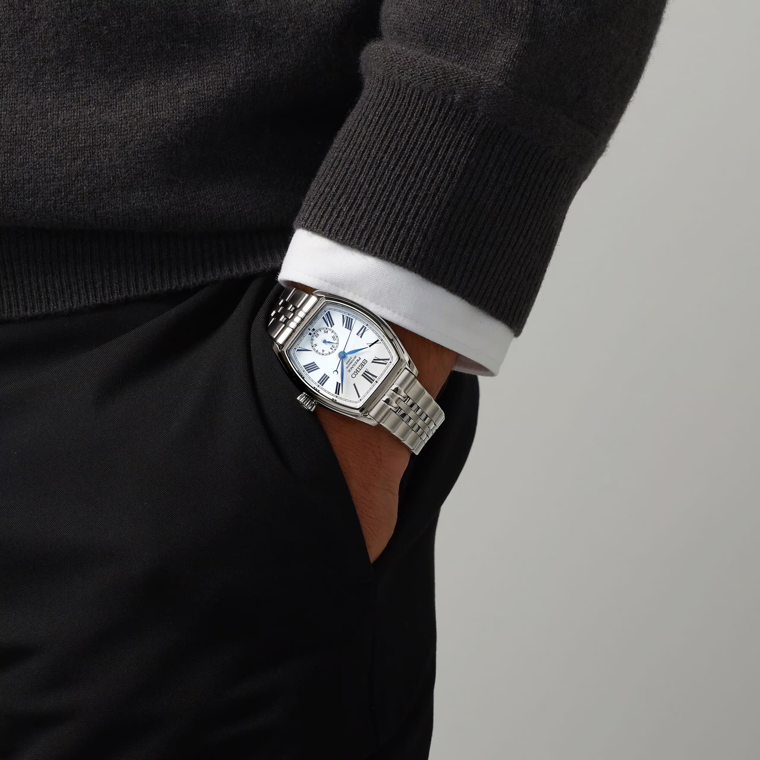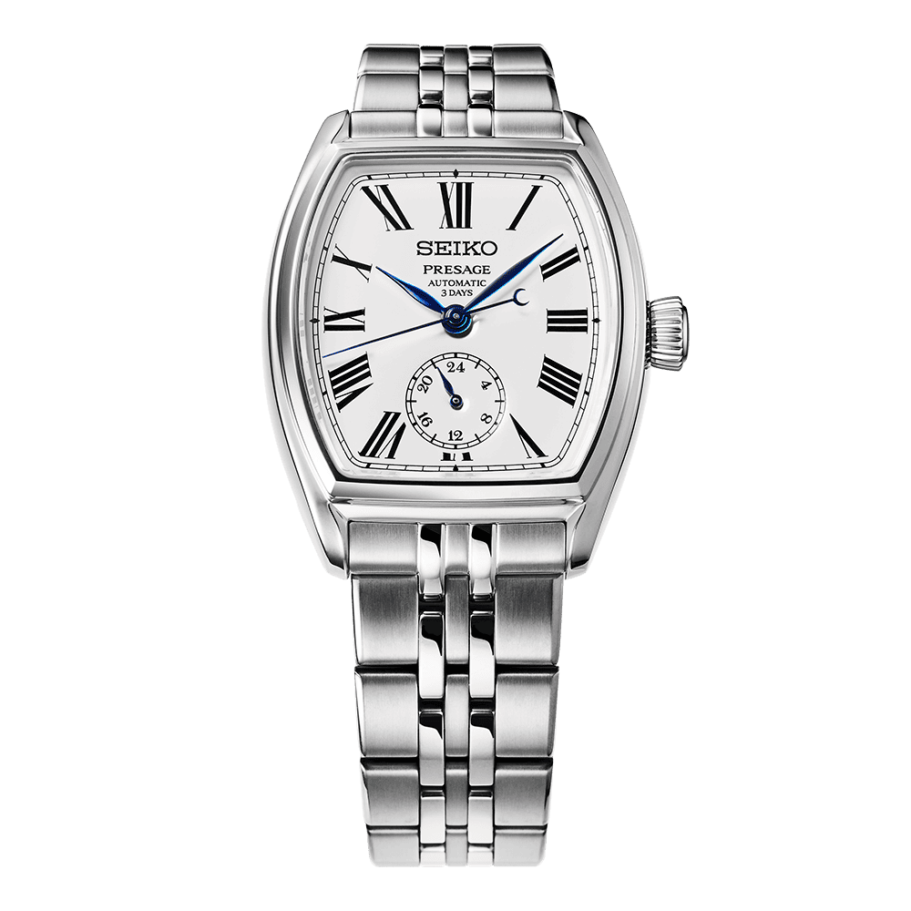 Ismerős a forma, hiszen a Seiko modellek között is találhattunk korábban hordó forma modelleket, ismerős a számlap, hiszen éppen most érkeztek meg a Seiko 145. évfordulójára megjelent újdonságok is, amelyek között szintén található egy zománc technikával készülő számlap is, és ismerős a stílus, hiszen a római számos számlap, a hat óránál elhelyezett 24 órás segédszámlap és a kék színű mutatók is mind a klasszikus stílusban készülő modellek sajátjai voltak eddig is a Presage sorozat mechanikus mesterművei között.