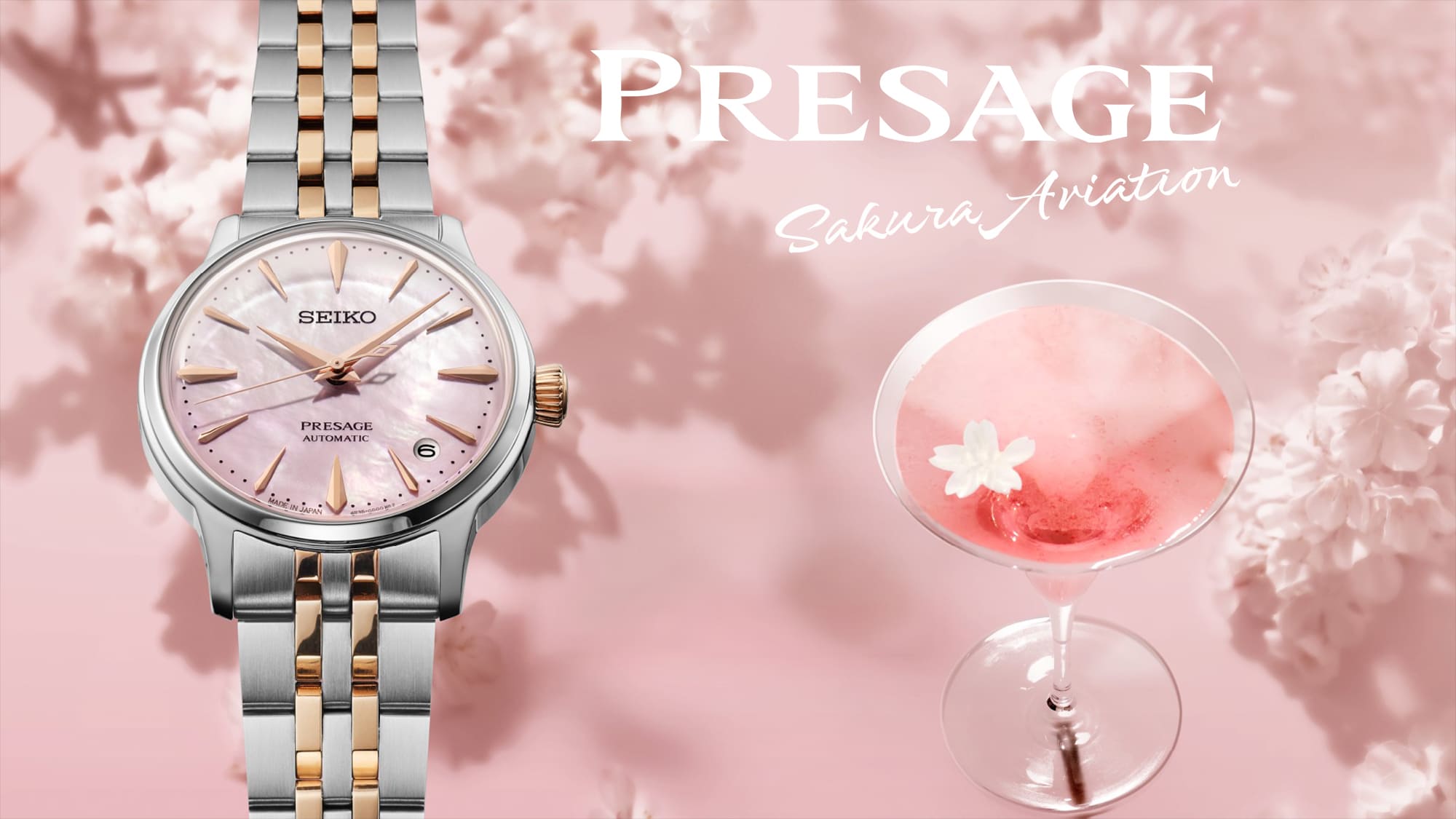 Ezt a koktélt alkotta meg Kisi Hiszasi, a jól ismert Aviation koktél receptjét a japánok kedvenc évszakára hangolva, és ezt a hangulatot hozta magával megjelenésekor a Presage Cocktail Time sorozatának legújabb tagja, az SRPM06J1 modell is.