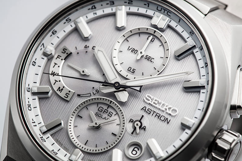 Az új Astron GPS Solar modellek, mint például az SSH159J1 is, mégis teljes egészében ezüst színű és erősen strukturált számlappal készülnek, illeszkedve az Astron megjelenés sajátosságaihoz.