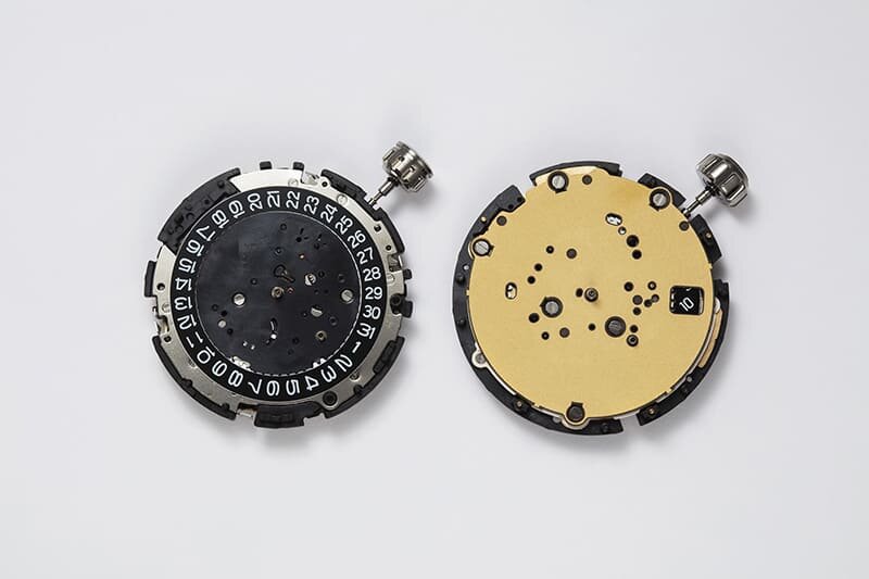 A bal oldalon a 2018-ban megjelent Caliber 5X53, míg a jobb oldalon az új fejlesztésű Caliber 5X83 látható. A Caliber 5X83 tetejét borító arany rész a lapos antenna, amely egyben a dátumtárcsát is a helyén tartja.