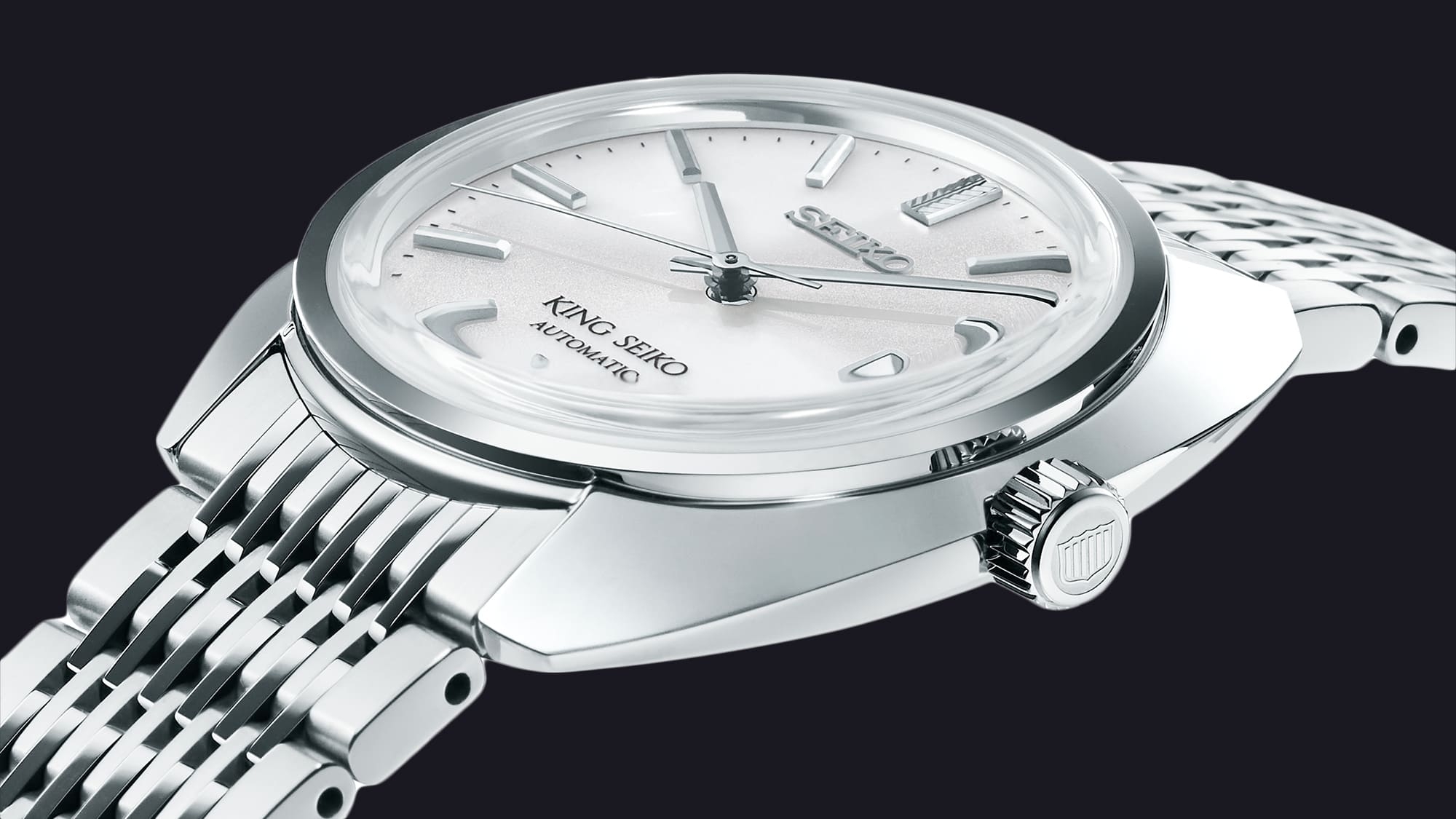 A tokforma mellett a vintage hangulatot erősíti az új, többsoros fémszíj is, amelynek a szálcsiszolt és tükörpolírozott felülete váltakozása adja meg a klasszikusan elegáns, mégis teljesen mai hangulatát a King Seiko kiemelkedő minőségében elkészítve.