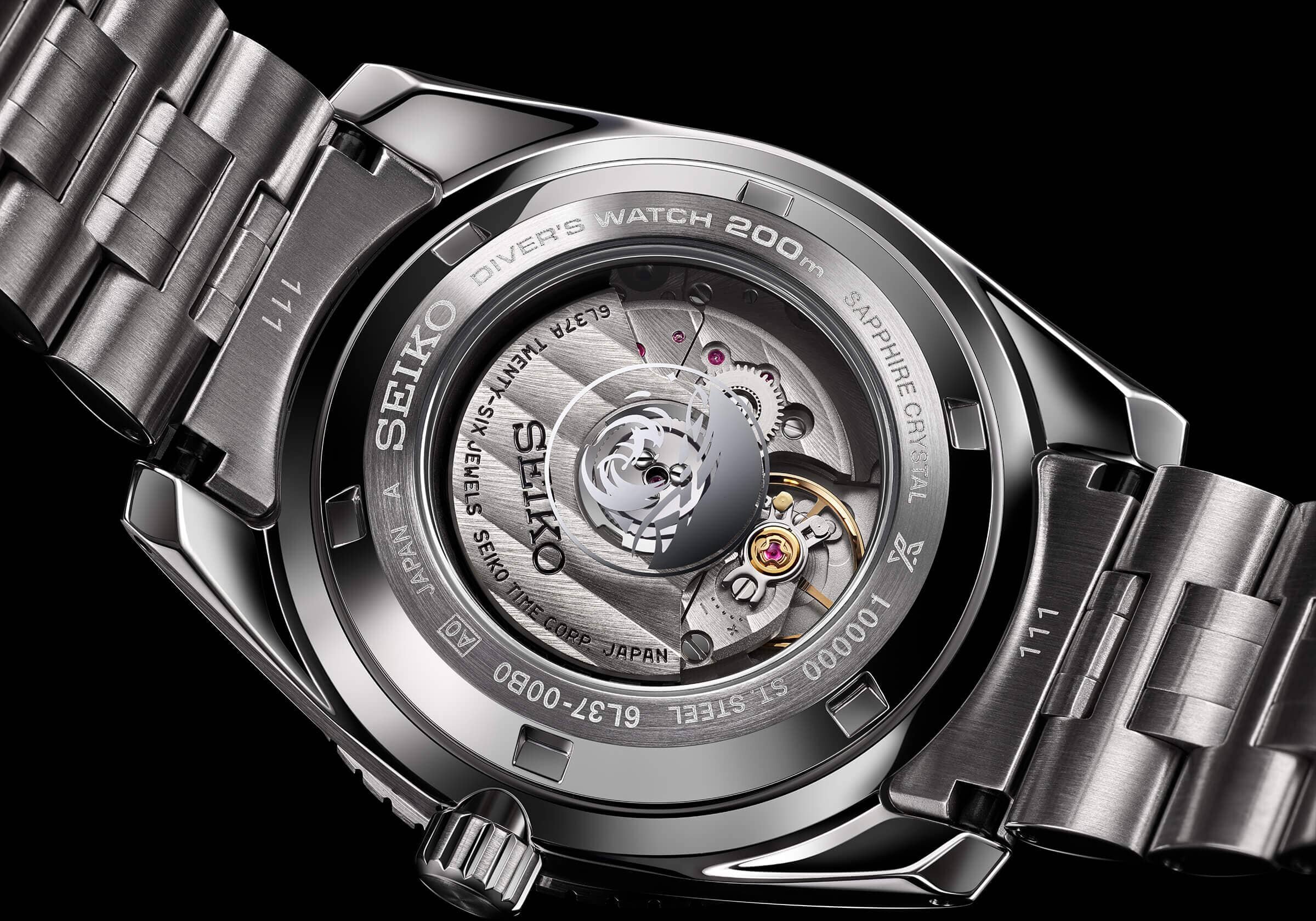 Az új megoldásnak köszönhetően így már láthatjuk a nemrég megjelent, a búvárórák részére kialakított strapabíró mechanikus automata 6L37 kalibert is, amelynek díszítése immár felveszi a versenyt a csúcskategória szerkezeteivel is. A hagyományok kedvelői megtalálják a híres nagy hullámokat is a hátlapon, ebben az esetben az üvegre festve (ez a Seiko búváróráinak jellegzetes eleme hosszú évtizedek óta, így helye van az új Marinemaster órákon is).