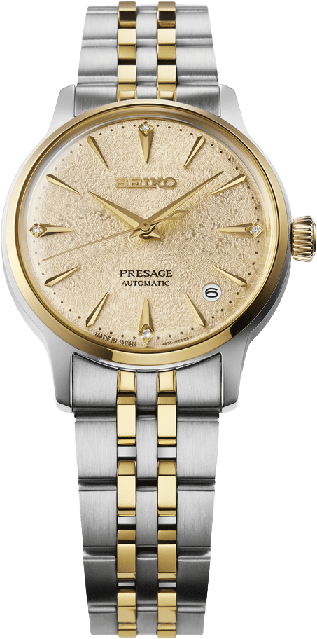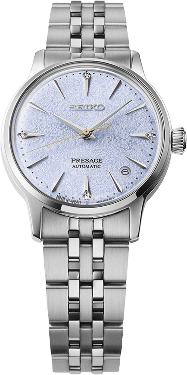 Nyáresti koktélpartik hangulatát idézi a Presage kollekció három új modellje, a Cocktail Time sorozat tagjai, amelyek az igényes hölgyek részére készültek. A különlegességük, mint általában, most is a számlapokban rejlik, a tokiói Star Bar bartenderének kedvenc koktéljai most fagyos hangulatban mutatják meg magukat.