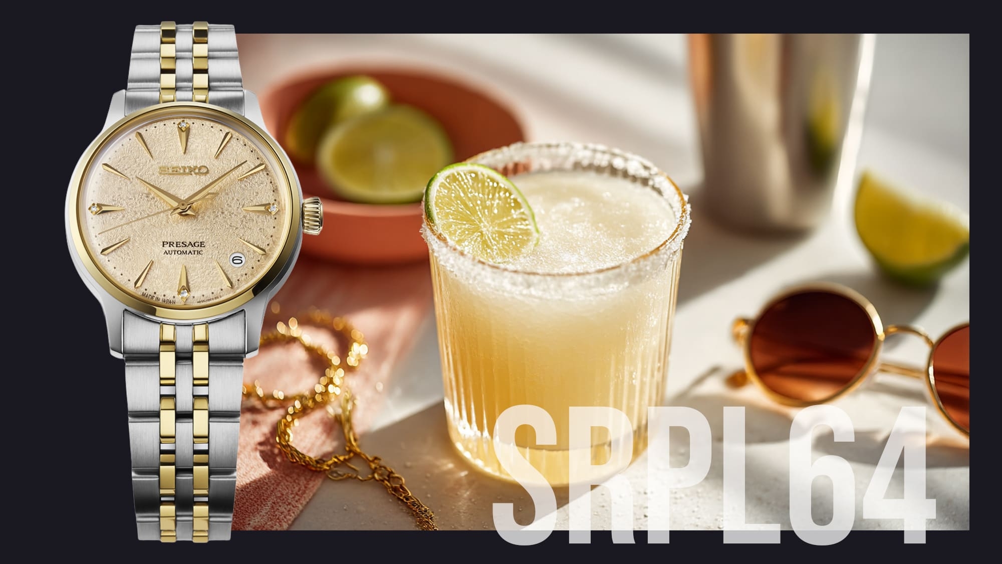 Az SRPL64J1 a legérdekesebb és legextravagánsabb a három modell közül, persze nem kihívóan, csak elegánsan. A méltán híres Daiquiri koktél fagyos változata ihlette, kellemesen aranyló részletekkel gazdagítva a klasszikusan nőies megjelenését.