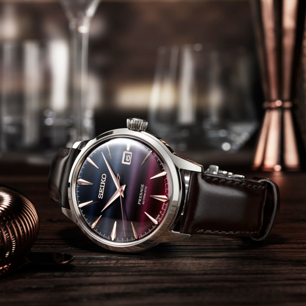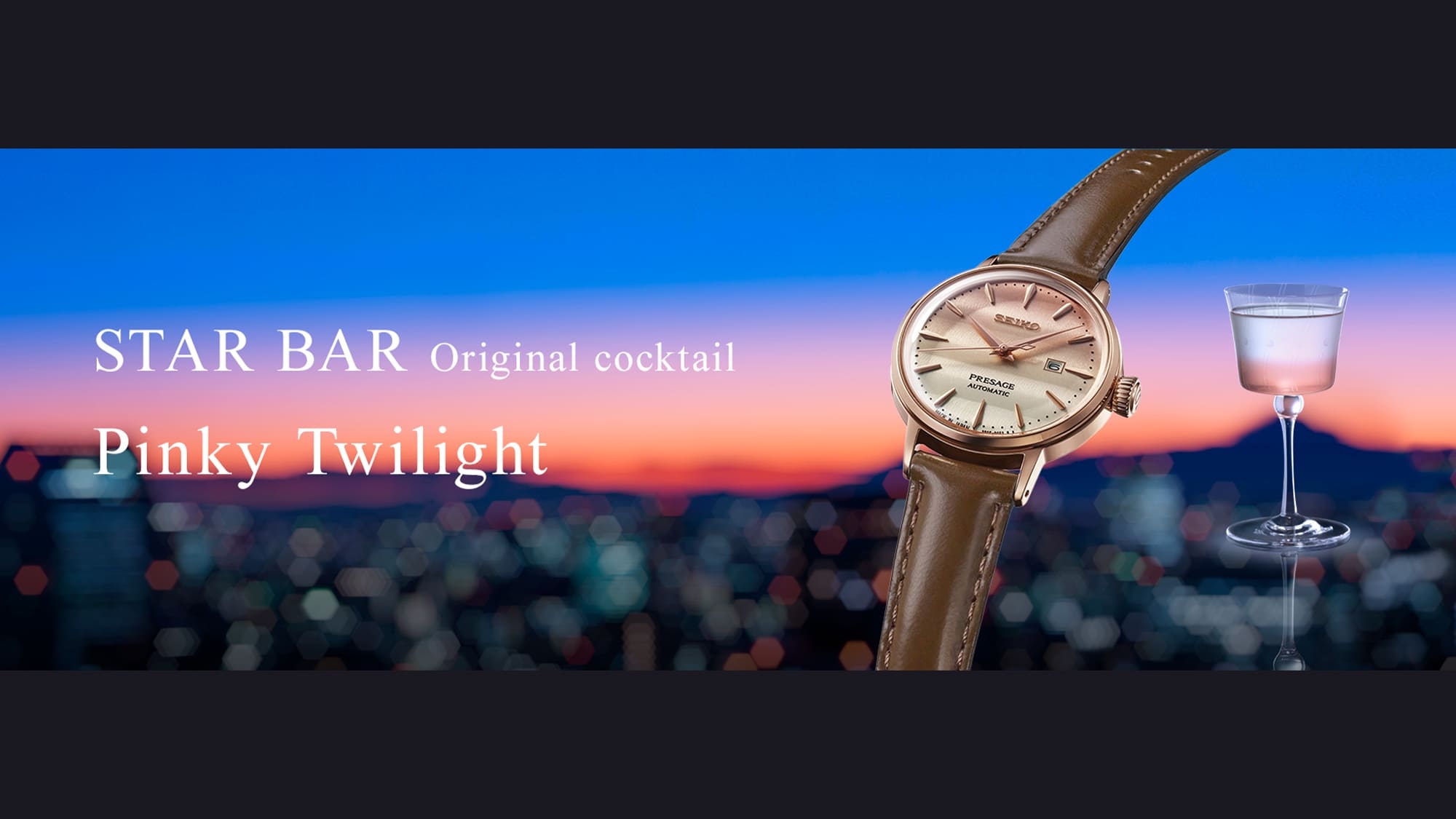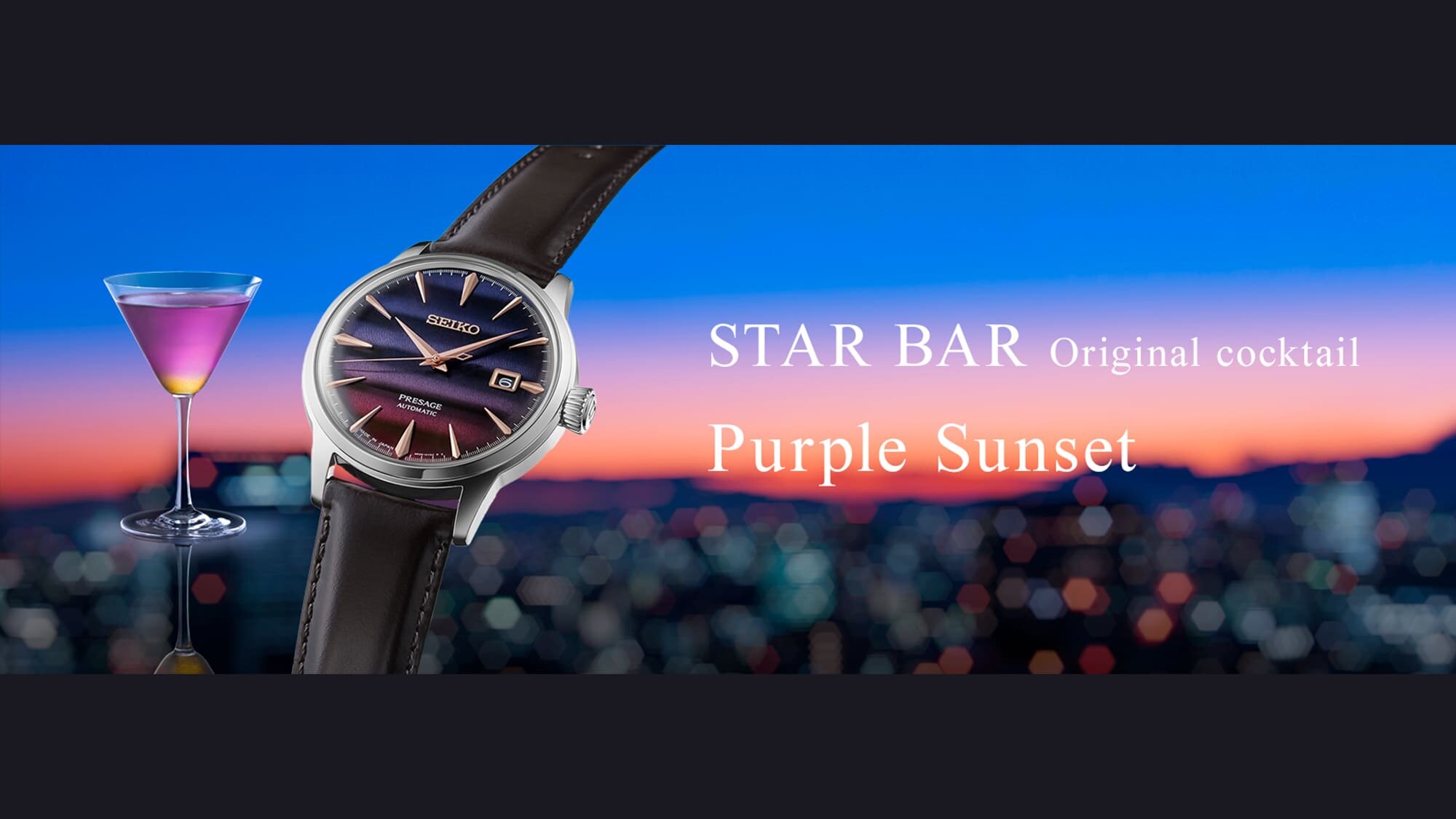 Ha azt halljuk Presage, akkor a Cocktail Time talán az első, ami eszünkbe jut róla. A tokiói Star Bar bartendere új koktélokat kevert a sorozathoz, így most egy limitált kiadású páros tiszteleg a tokiói naplementék előtt. A két új modell hangulata ismét egyedi, a Pinky Twilight és a Purple sunset koktélok pedig a hamisítatlan ginzai estéket idézik fel újra.