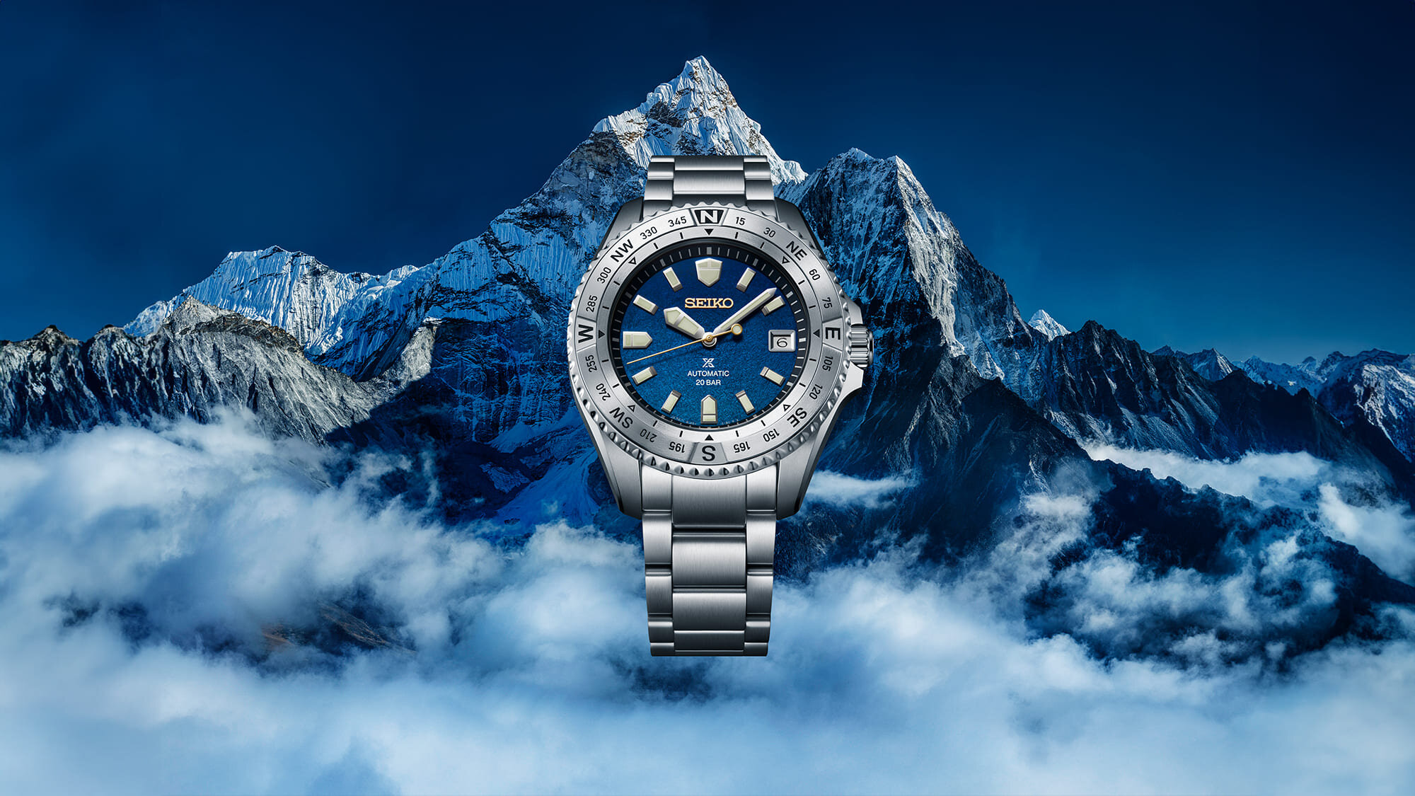 A számlap, ahogy azt a Seiko óráitól már megszokhattuk, szintén különös gonddal készült. A Landmaster SLA071J1 modell számlapja a kék különféle árnyalatai közötti átmenetével a Mount Everest feletti ég kékségét mutatja be, ahogy a hegymászók egyre feljebb érve az egyre vékonyodó légkör miatt egyre mélyebb kék színben láthatják az eget.