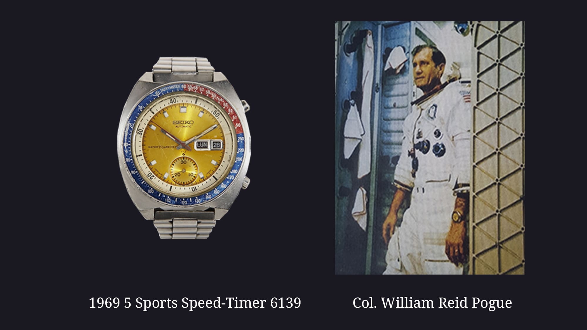 A történet a kétezres évek elején kapott szárnyra, amikor egy óragyűjtő, David Bruno felfedezte egy fotón, hogy az egyik hetvenes évekbeli amerikai űrhajós, William Reid Pogue ezredes csuklóján egy korabeli Seiko 5 Sports Speed-Timer modell látható.