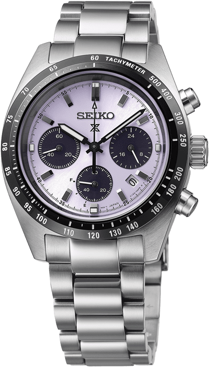 Az SSC955P1 modell a Speedtimer Solar Chronograph modellek kisebb átmérőjű, 39 mm-es változatai közé tartozik, így kényelmes mindennapi viseletet ad, és ehhez a mérethez talán a számlap lila árnyalata is jobban illik.