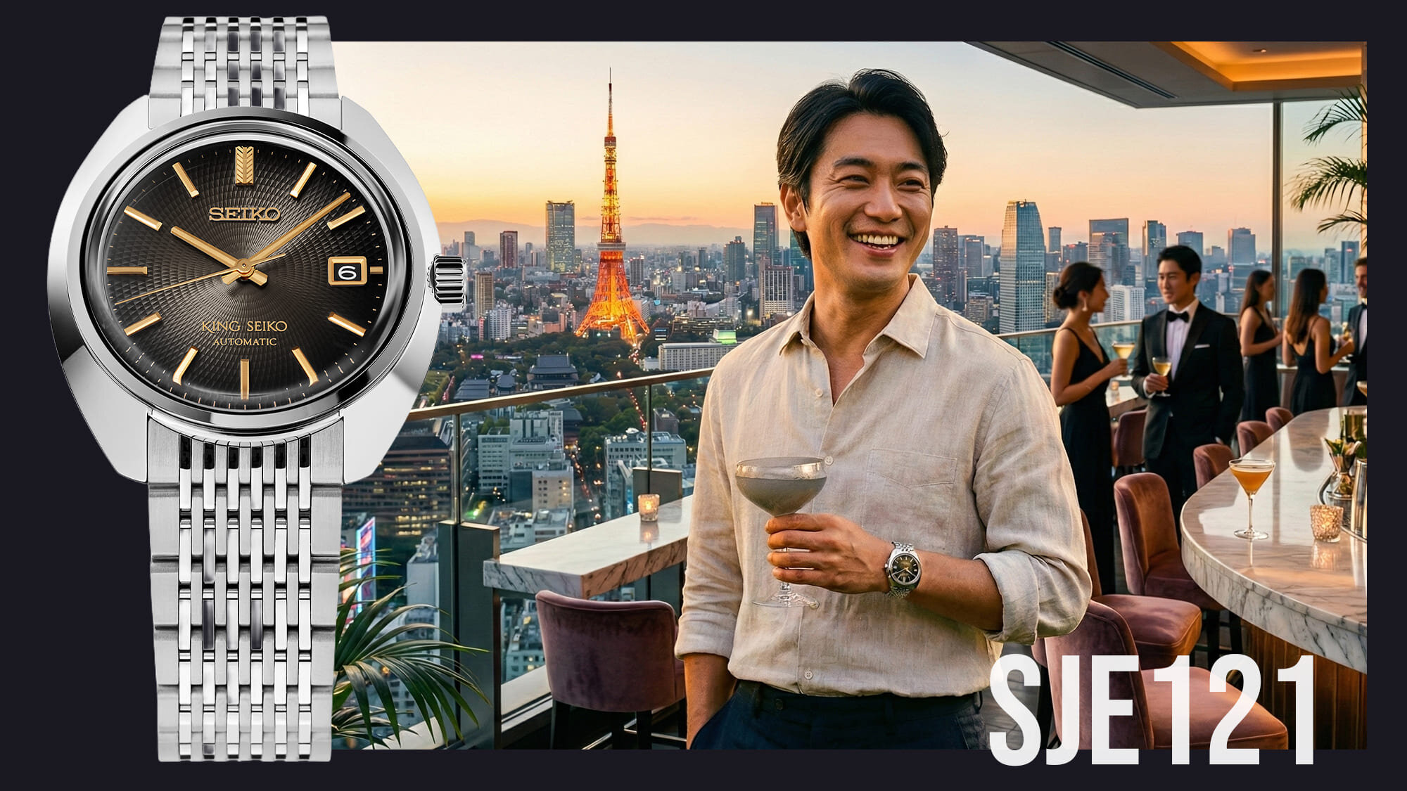 Az SJE121J1 is maga a tökéletes vintage harmónia, a 6L35 kalibernek köszönhető vékony, mégis látványos formákkal bíró tok ma is kifogástalan megjelenésű, a fémszíj korabeli stílusa pedig a kényelmes mindennapi viselet záloga.