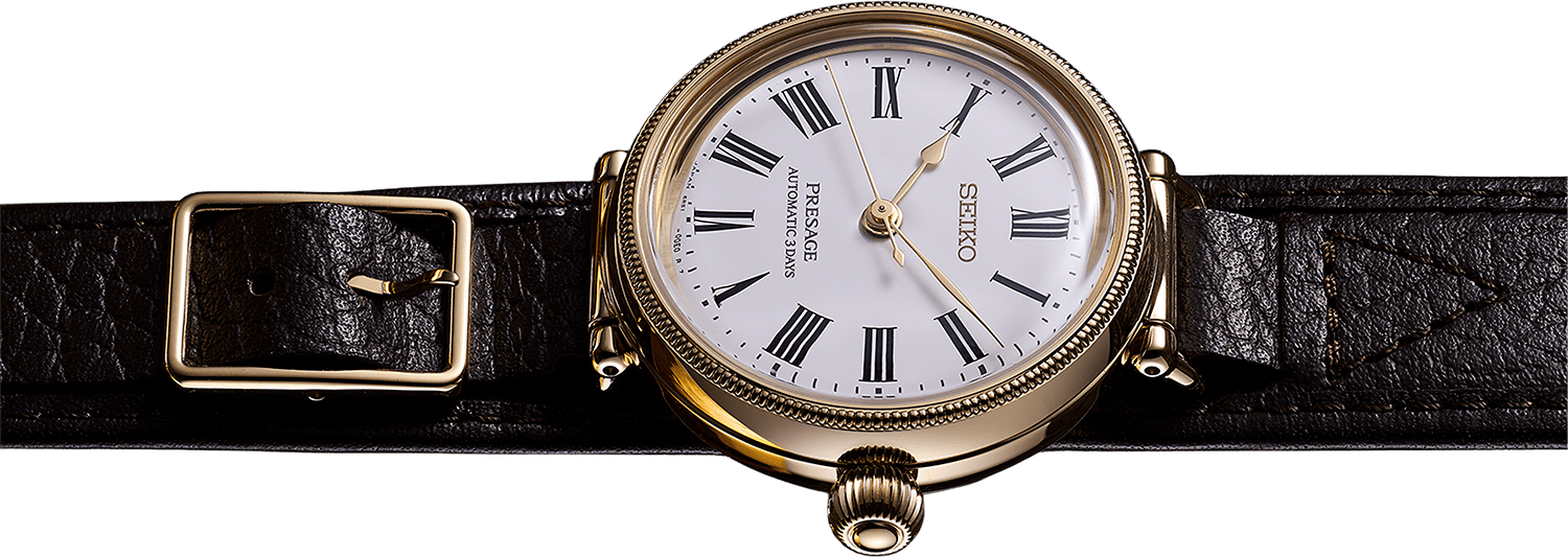 Az óra megjelenése egyértelmű utalás az első zsebórákra, kicsit vegyítve azt a korszakra jellemző, az 1910-es években megjelent első karórák méretével. A 35 mm-es átmérője mai szemmel nézve már bőven a mid-size kategóriát is alulról súrolja, de egyrészt egy jubileumi, megemlékező kiadásnak ez megbocsájtható, másrészt ezzel utat nyit az igényes hölgyek számára is, akik értékelik a Seiko stílusbeli és műszaki örökségét is.