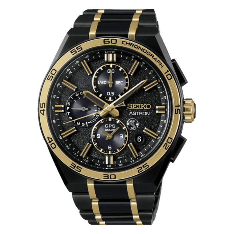 A fekete és az arany visszatérő motívuma a jubileumi Astron modelleknek, korábban az alapító, Kintaro Hattori évfordulós modellje is ebben a színösszeállításban készült - elegáns és mégis jól illik a high-tech órához.