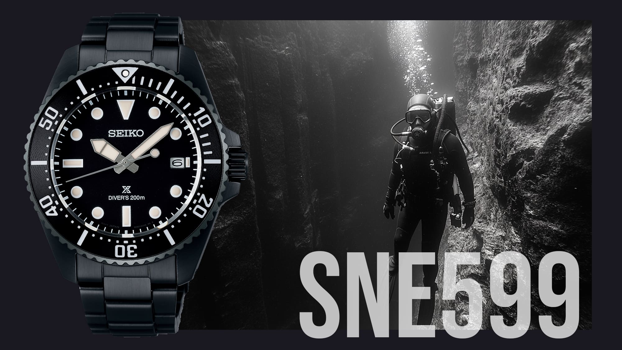 Egyszerűen csak “A búváróra”. Az SNE597 modell a lehető legeredetibb design, a nemesacél tok és a fekete számlap, illetve lünetta a kontrasztos, fehér indexekkel és széles mutatókkal messziről felismerhető, egy örök kedvenc darabja a búváróra rajongóknak.