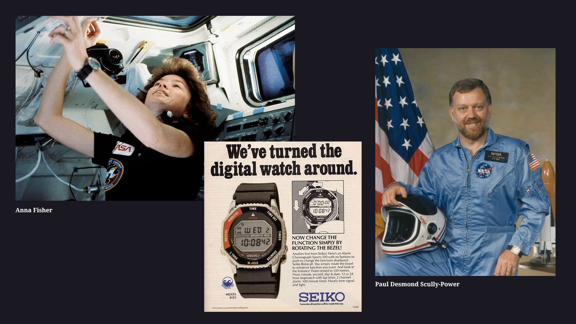 A Seiko neve többször bukkant fel az űrutazások során, mint gondolnánk. A hetvenes években Pogue ezredes viselte kedvenc 6139-esét az űrben, majd jött a nyolcvanas évek, a digitális forradalom az óraiparban, és a Nasa űrhajósai közül is többen a Seiko digitális karórái mellett tették le voksukat. Egy különleges forma, egyedi funkciók és a hétköznapok megbízható darabja, ezt ígérték már az első megjelenésükkör is, és ezt adják most, a 2025-ben visszatért űrutazók is.
