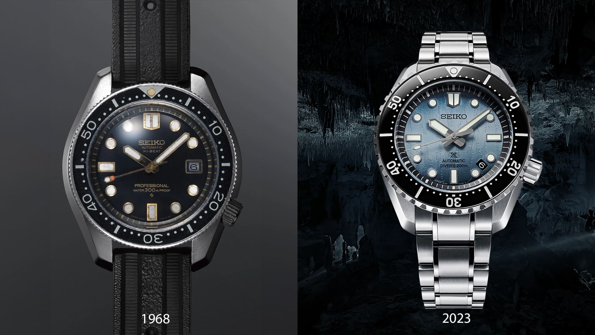 Ez az újdonság is a nevében hordozza a dicső elődjét, a Seiko 1968-ben bemutatkozott 6159-7001 Hi-Beat Professional 300m modelljét idézi fel. A “Re-Interpretation” kiadás nem teljes egészében egyezik az eredetivel, hanem a stílusát, a design elemeit és a hangulatát ülteti át a mai kor elvárásai és technikai lehetőségei közé.
