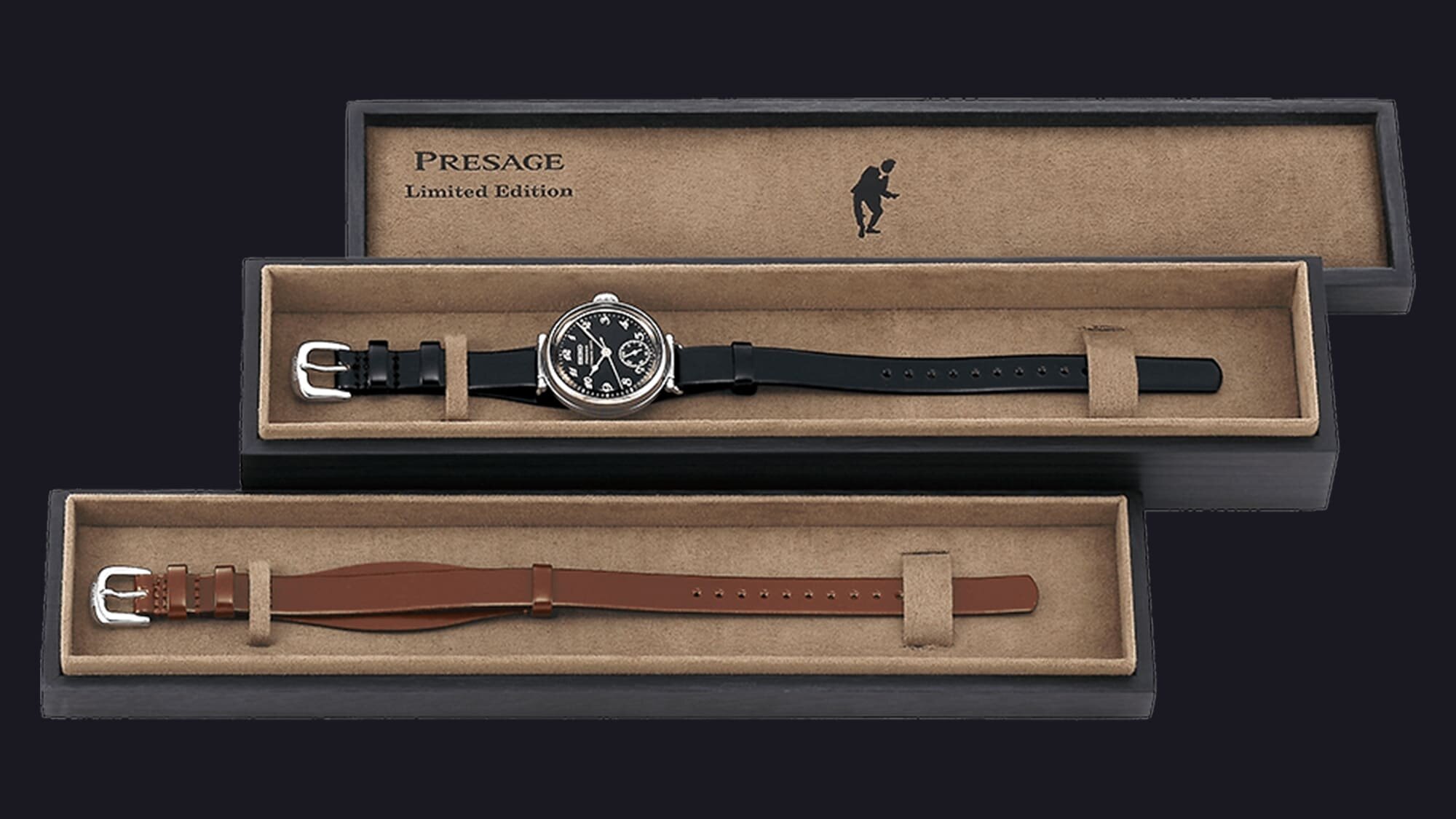 Egy különleges dobozban érkezik az új modell, amely több szintes kialakítású, úgynevezett Jubako stílusban készült. Ennek oka az a bőrszíj, amely szintén a limitált modellhez tartozik, és barna színével jól kiegészíti az órához tartozó fekete szíjat is.