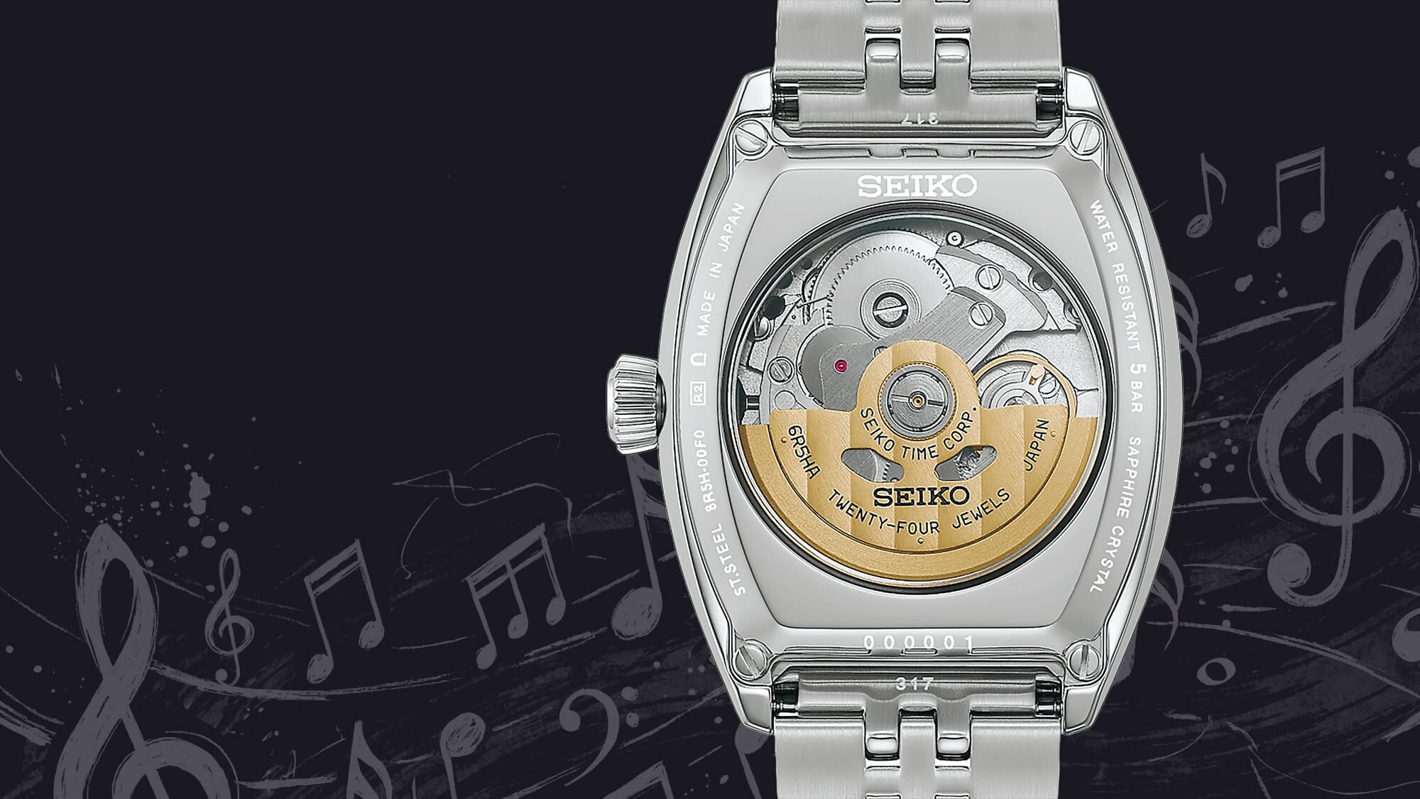 A mintázata, az indexek és a percosztás sem újkeletű, az első saját gyártású Seiko zsebóra, a Timekeeper modell is már ezzel a vasúti vágányokat idéző perc skálával és római számjegyekkel készült, és a hat óránál elhelyezett, jelenleg 24 órás segédszámlap megjelenése is a klasszikus, ahogy a kékített acél mutatóké is.