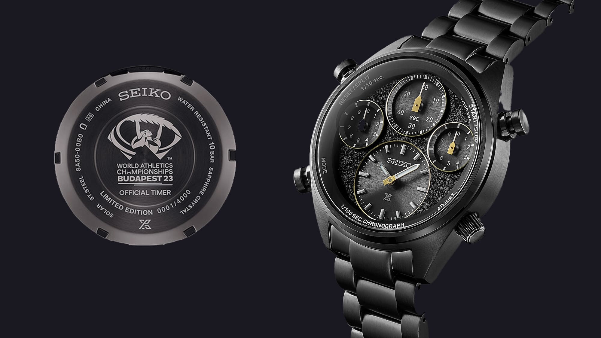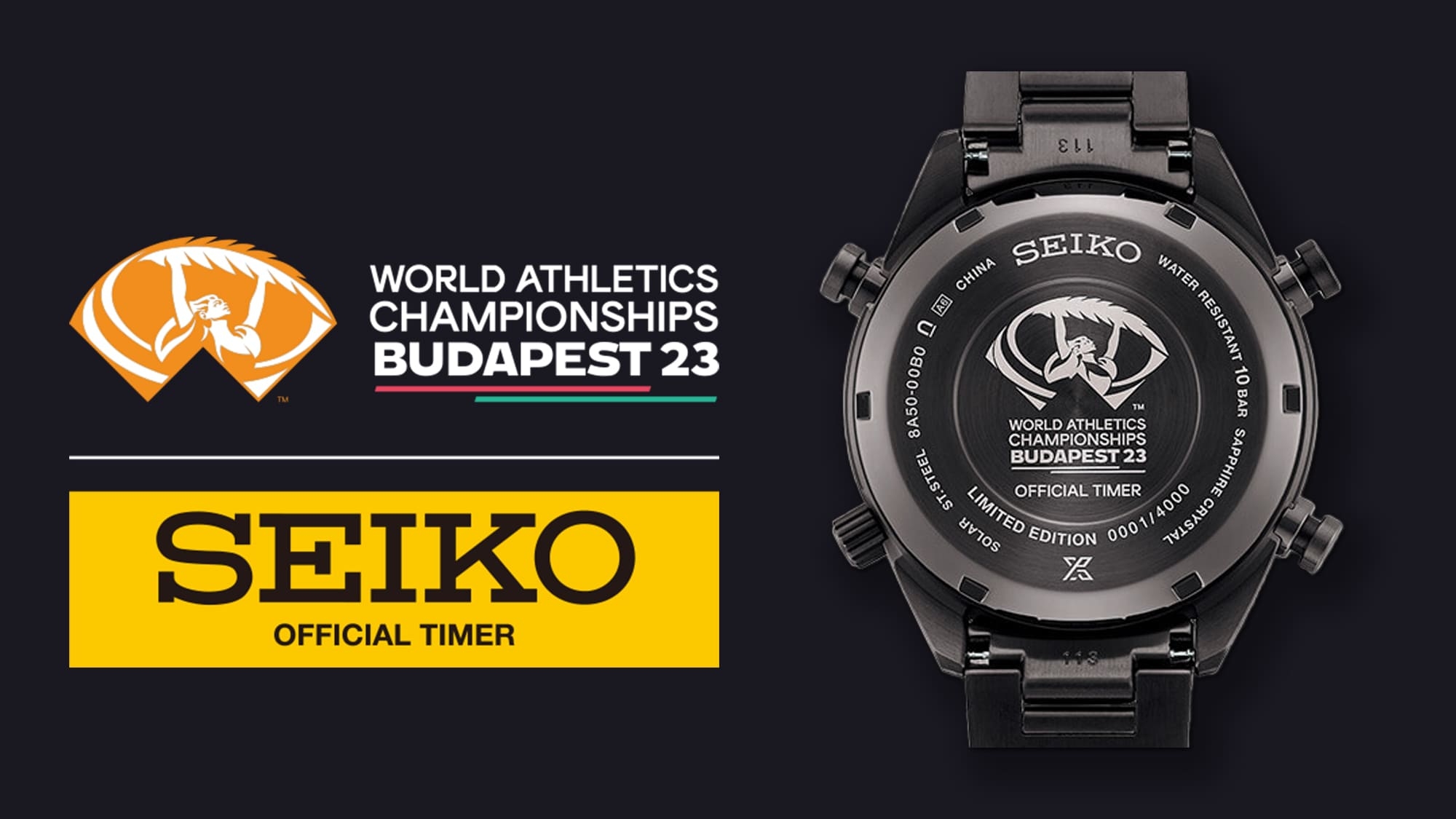2023-ban végre Budapest adhat otthont az egyik legjelesebb sportversenynek, az Atlétikai Világbajnokságnak. A Seiko ennek tiszteletére egy különleges, 4000 darabban limitált kiadású Speedtimer 1/100 solar chronograph modellel készült, az SFJ007 hátlapján az esemény hivatalos logója és az óra egyedi sorszáma is látható lesz.