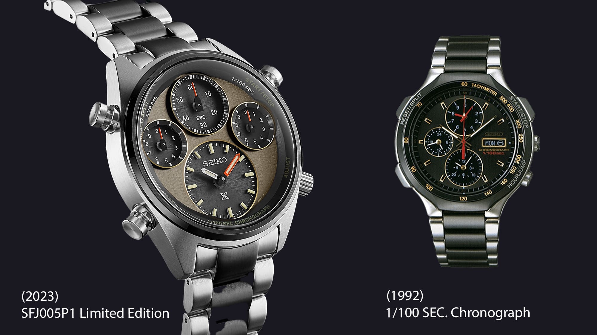 A 4000 darabos limitált kiadású SFJ005 modell egy korábbi kiadásra emlékezik annak jellegzetes megjelenésével. Az első analóg kvarc kronográf kaliber 1983-ban jelent meg, és ennek készítette el egy 1/100 másodperc pontosságú változatát 1992-ben a Seiko, az új SFJ005 modell pedig ennek a kiadásnak a jellegzetes megjelenését kapta.