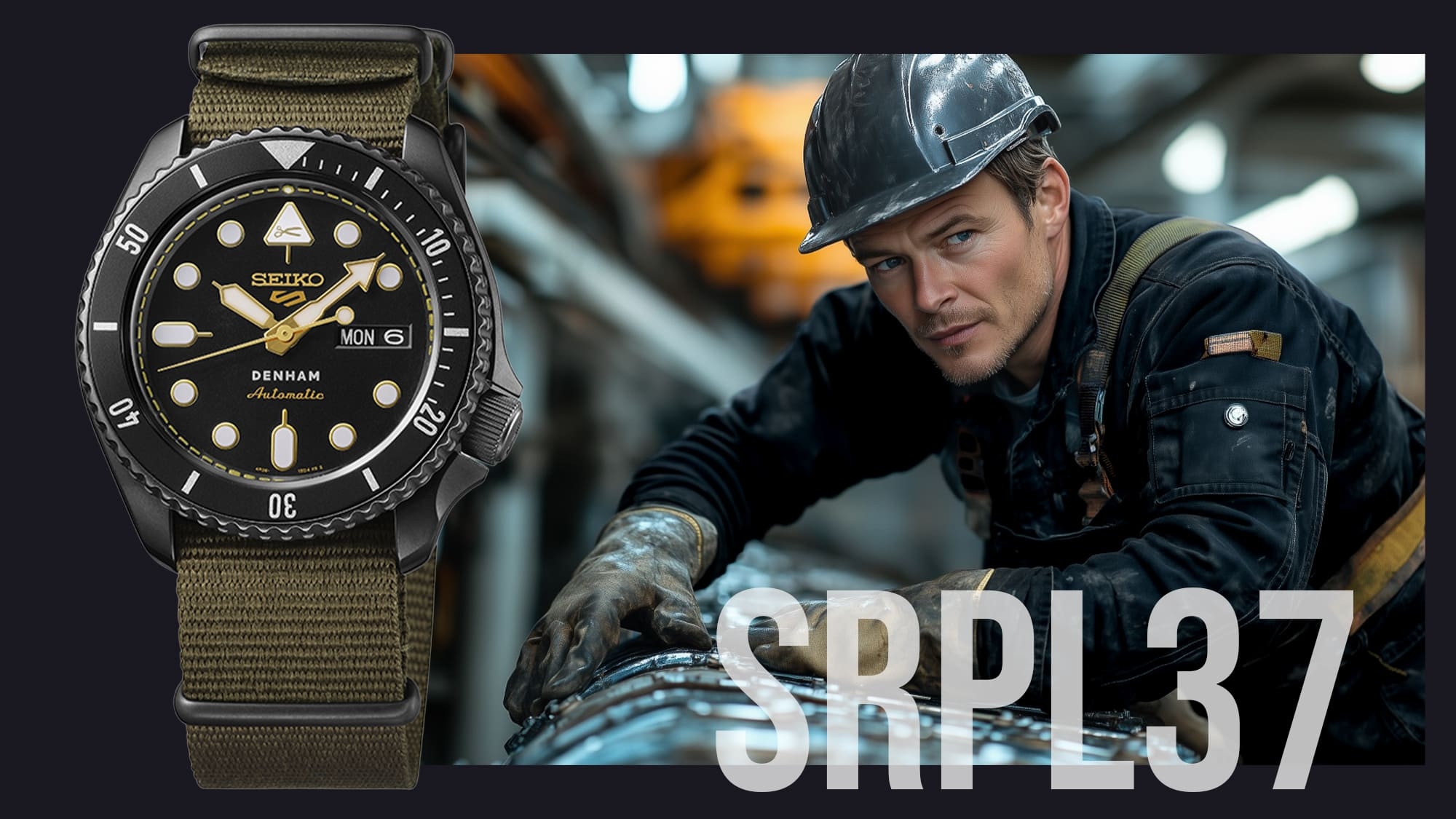 Talán ez a párhuzam sarkallta az SRPL37K1 modell megalkotásakor a Seiko tervezőit egy újabb kollaborációra a Denham márkával, így a nemrég érkezett és igen népszerű SRPL35K1 modell után, amely a jellegzetes farmerkék színben készült, most egy fekete-arany-zöld színösszeállítással jelentkezzen, mert a farmer nem csak kékben, de feketében is létezik.