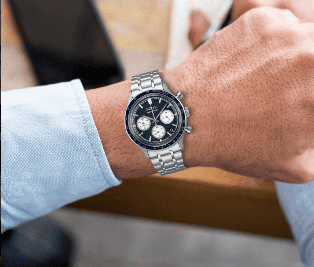 Az SSB479P1 modell egy valódi klasszikus, a fekete számlap a törtfehér segédszámlapokkal vintage hatást sugall, ami ehhez a stílushoz tökéletes. Az óra vízállósága 5 Bar, ami a mindennapokban elég biztonságot ad, a vizes élményekhez pedig a Seiko búvárórái lesznek a legmegfelelőbbek.