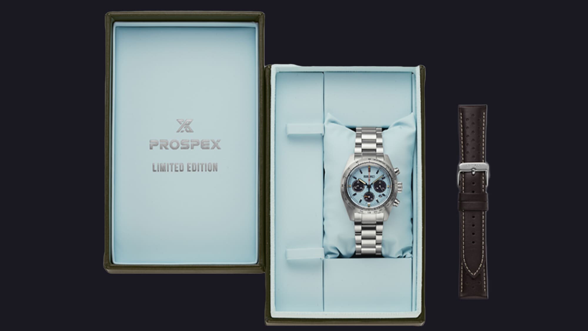 A szerencsés vásárlók, akik hozzájutnak majd, egy különleges, világoskék belsővel készülő díszdobozban kapják meg az órát, amelyben a már említett eredeti Seiko bőrszíj is található.