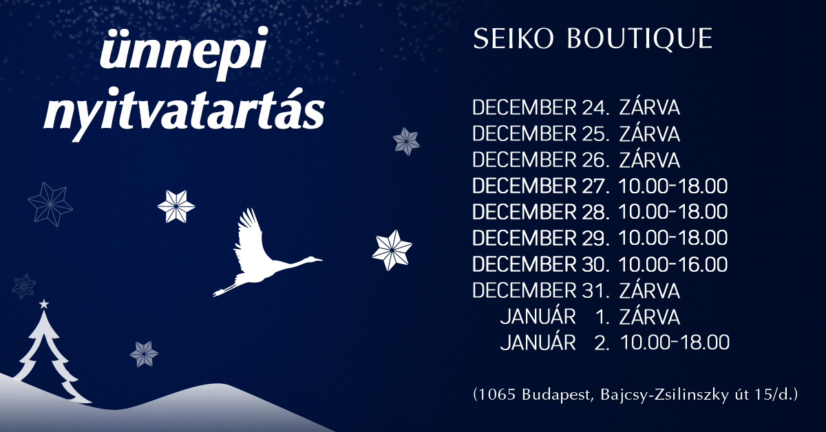 A két ünnep között is várunk szeretettel a Seiko Boutique-ban, ahol a legnagyobb hazai Seiko választék mellett a Grand Seiko különleges modelljeit is megnézheted, felpróbálhatod és megvásárolhatod!