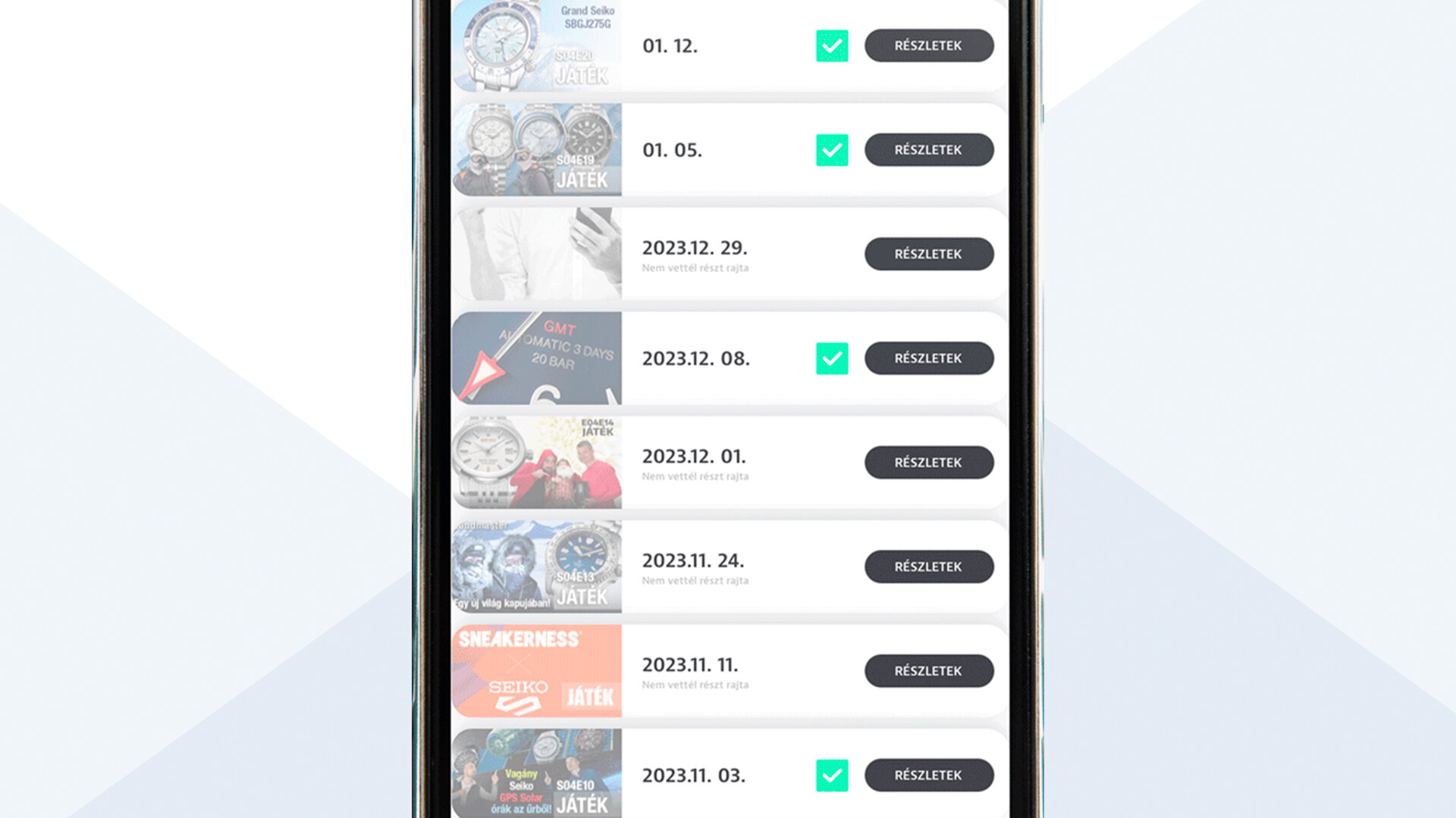 A Seiko Youtube csatorna nézői már tudhatják, hogy péntekenként a videókhoz kapcsolódóan rendszeresen ajándékokat sorsolunk ki azok között a nézők között, akik a Youtube-on vagy az applikációban szavaznak, vagy helyesen válaszolnak egy-egy feltett kérdésre. A nyereményjátékok a jövőben is megmaradnak, és mostantól - egyebek között - azt is megmutatjuk, hogy az egyes válaszlehetőségek milyen arányban kaptak szavazatokat.