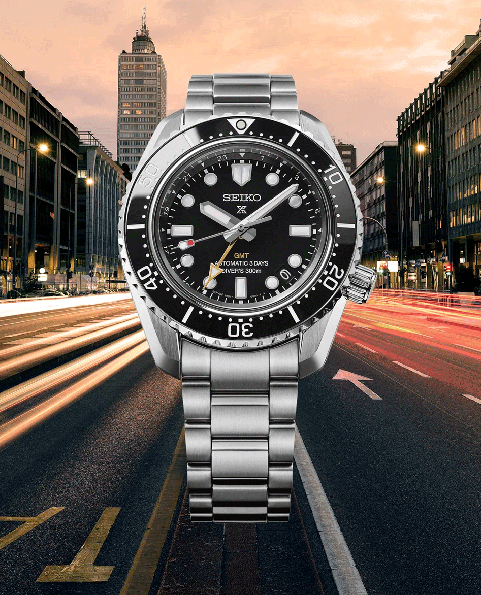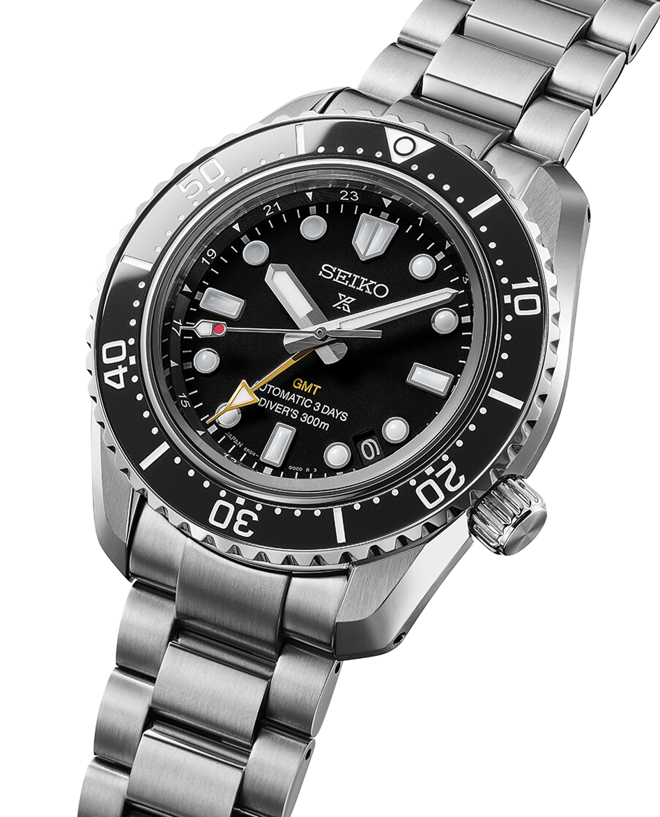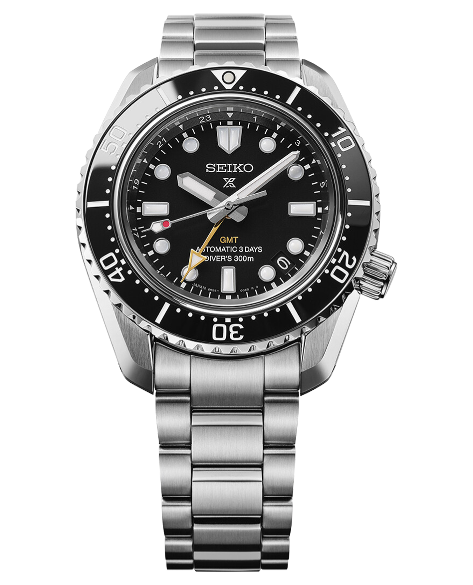 A Seiko Prospex HBC002J1 a sorozat letisztultabb, klasszikusabb megjelenésű változata. A fekete számlap és a visszafogott színvilág a hagyományos búvárórák karakterét hozza, jól olvasható kialakítással és erős kontrasztokkal. A modell ugyanazt a 6R54 automata GMT szerkezetet kapta, amely 3 napos járástartalékot biztosít, és lehetővé teszi több időzóna egyidejű követését. A GMT funkció praktikus kiegészítés, különösen utazásnál vagy napi használat során. A tok kialakítása az 1968-as Seiko diver örökségére épül, modern kivitelben. A menetzáras hátlap és a diver’s 300 méteres vízállóság valódi használatra készült órává teszi. A nemesacél tok és szíj masszív, a zafír üveg karcálló. A csat gyorsállító mechanikája lehetővé teszi a szíj egyszerű finomhangolását, akár napközben is. A 42 mm-es átmérő és a kiegyensúlyozott arányok miatt az óra határozott megjelenésű, de mindennap is kényelmesen viselhető.