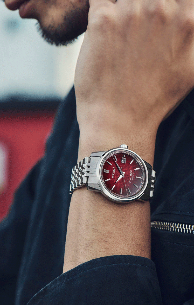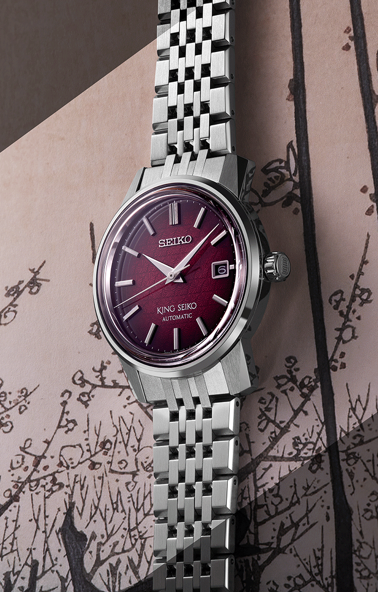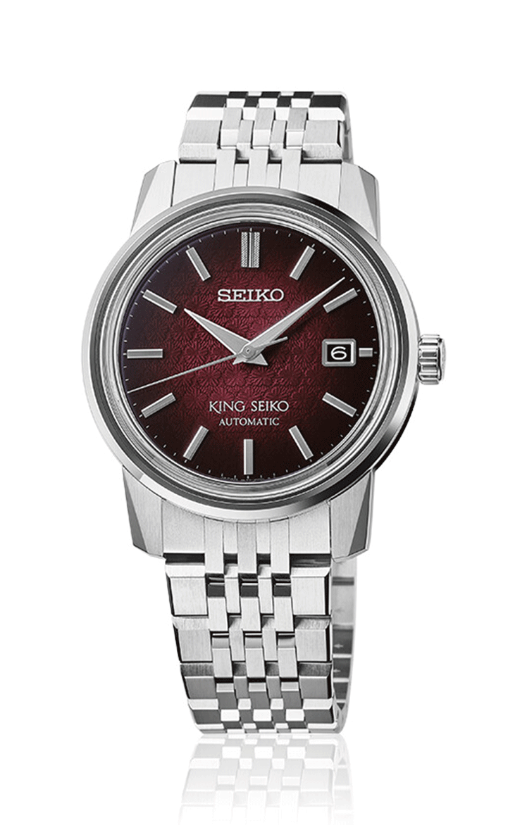 Az SJE103J1 modell számlapja mélyvörösben játszik, amely a sziget jellegzetes szilvafáinak virágzásakor látható mindenütt. A szín mellett a számlap mintázata is ezt a témát követi, a kis virágminták a fény-árnyék játékával kiválóan láthatóvá válnak. A számlap színe és mintája Kameido szigetének jellegzetességeit idézik fel. A King Seiko KSK modell hátlapja tömör, és az új King Seiko logó díszíti, amely az eredeti, pajzs formájú logó kissé modernizált változata. SJE103J1 modell 10.7 mm-es vékonyságáért a 6L35 mechanikus automata kaliber felel, amely mindössze 3.7 mm vastag, mégis 45 órás járástartalékával és -10/+15 mp napi járáseltérésével kiemelkedik a mechanikus szerkezetek közül.