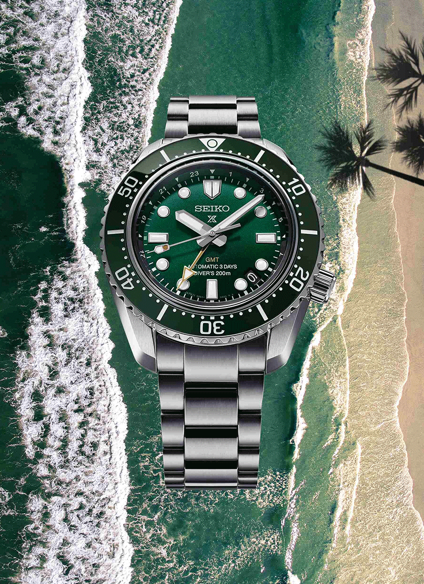 Az SPB381J1 modell egy klasszikus színösszeállításban készült. A zöld számlap és az arany színű GMT mutató és felirat ismerős lehet a Seiko búvárórák ismerőinek, egy időtlen stílus a legújabb technikával. A széles mutatók és a nagy méretű indexek mind a minél biztosabb leolvashatóságot segítik, az ISO minősítésnek megfelelő diver’s 200m vízállóság nem csak egy szlogen, ez egy valódi búváróra, ahol a leolvashatóság az egyik elsődleges szempont. Az új 6R54 kaliber a Seiko 6R szerkezeteinek sorát bővíti, és a legendás megbízhatósága mellett két fontos, a mindennapokban is használható jellemzője van. A legfontosabb a GMT komplikáció, amely most mutatkozik be a 6R kaliber családban, és utat nyit a további érdekesebbnél érdekesebb GMT modell megjelenése előtt. A plusz mutató a jellegzetes formájával diszkréten jelenik meg a számlapon, mégis hangsúlyos többletet ad ahhoz, és a színeivel további lehetőség nyílik a design akár elegánsabbá, akár sportosabbá tételére. Az új 6R54 kaliber másik fontos tulajdonsága a 72 órányi járástartaléka, amely a plusz komplikáció fényében még nagyobb jelentőségű, és a mindennapokban akár három napra is engedi pihentetni az órát anélkül, hogy azt újra be kellene állítani.