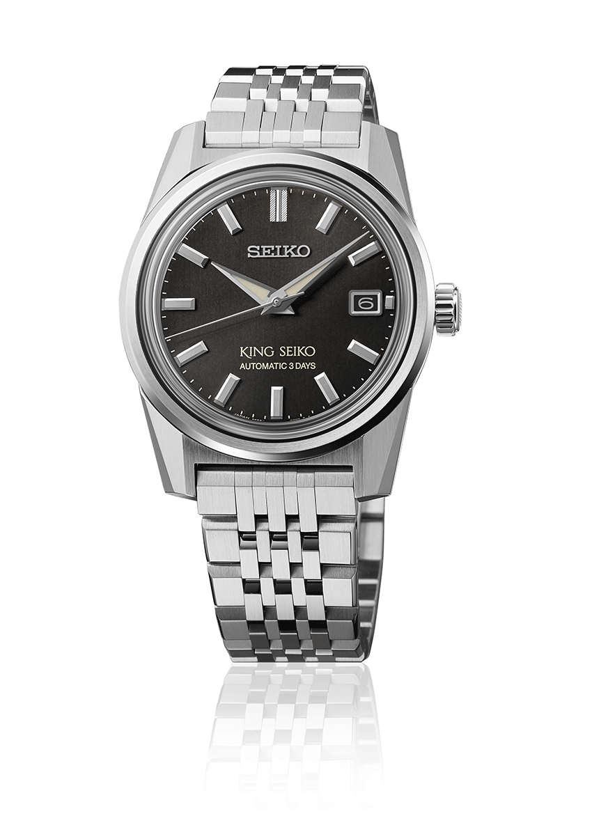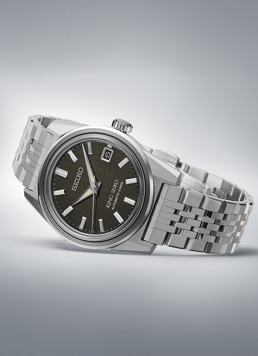 Az új King Seiko sorozat megjelenése tökéletesen hozza vissza a hatvanas-hetvenes évek érzéseit, ebben segít a 44KS stílusába készülő tok formája éppúgy, mint a fémszíj kialakítása. A nemesacél tok és szíj szálhúzott felülete is a vintage hangulatot erősíti. A King Az SPB373J1 számlapjának zöld színe egyszerre érdekes és egy kicsit más, mint a megszokott számlap színek, mégis mára teljesen elfogadott a zöld minden árnyalata s számlapoknál. Az SPB371J1 mérete, melynek tokátmérője 39 mm lehetővé tette egy plusz komplikáció megjelenítését is a számlapon, így mostantól dátumablakot is találunk a King Seiko-n. Ehhez természetesen szükség volt egy új kaliberre is. 6R55 szerkezet érdekessége a dátum komplikációja mellett a megnövelt, 72 órás járástartalék, amely a számlapon is feltüntetésre került egy kis játékkal - a 72 óra helyett a stílusosabb “3 Days”, vagyis “3 nap” felirat található.