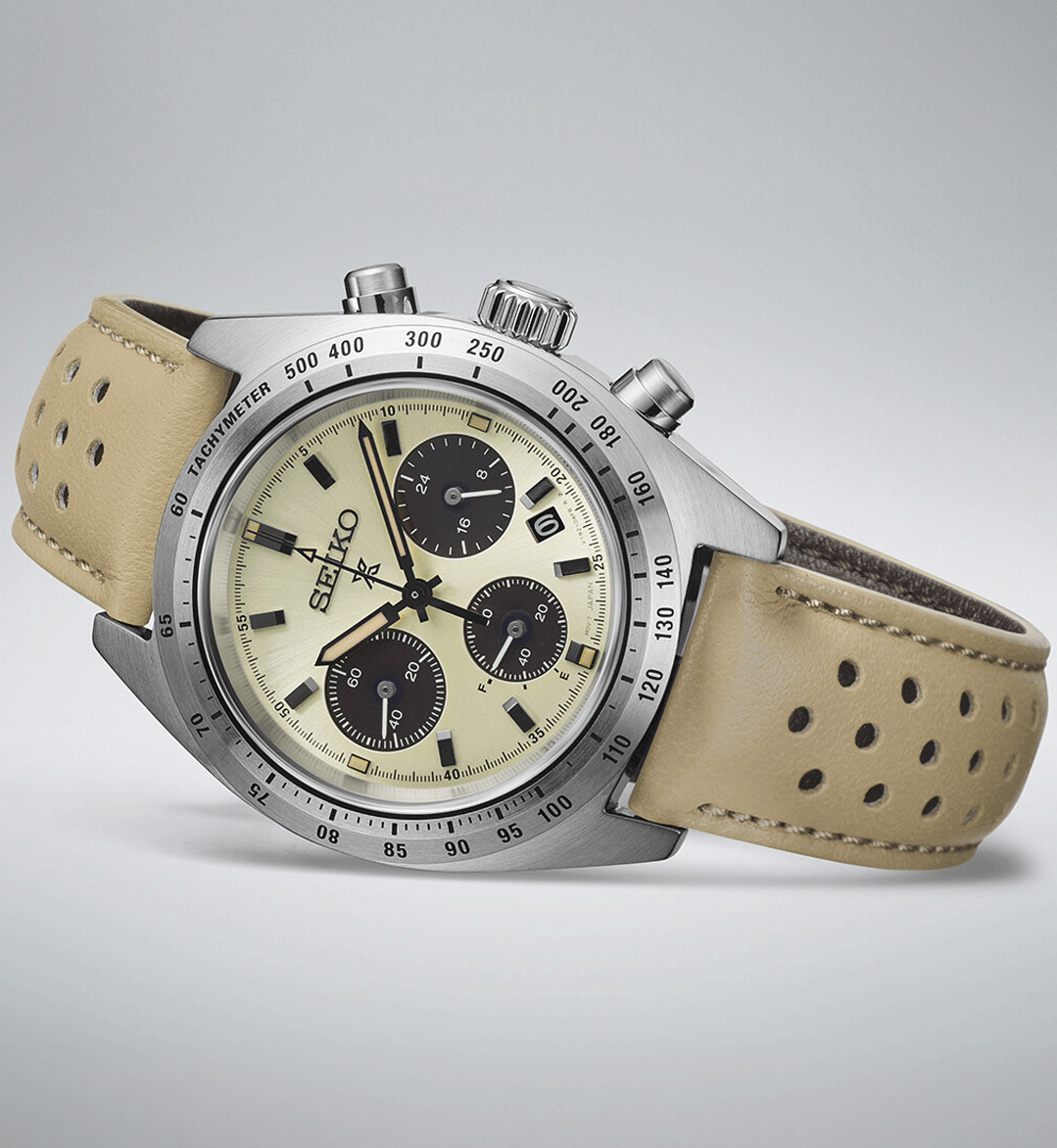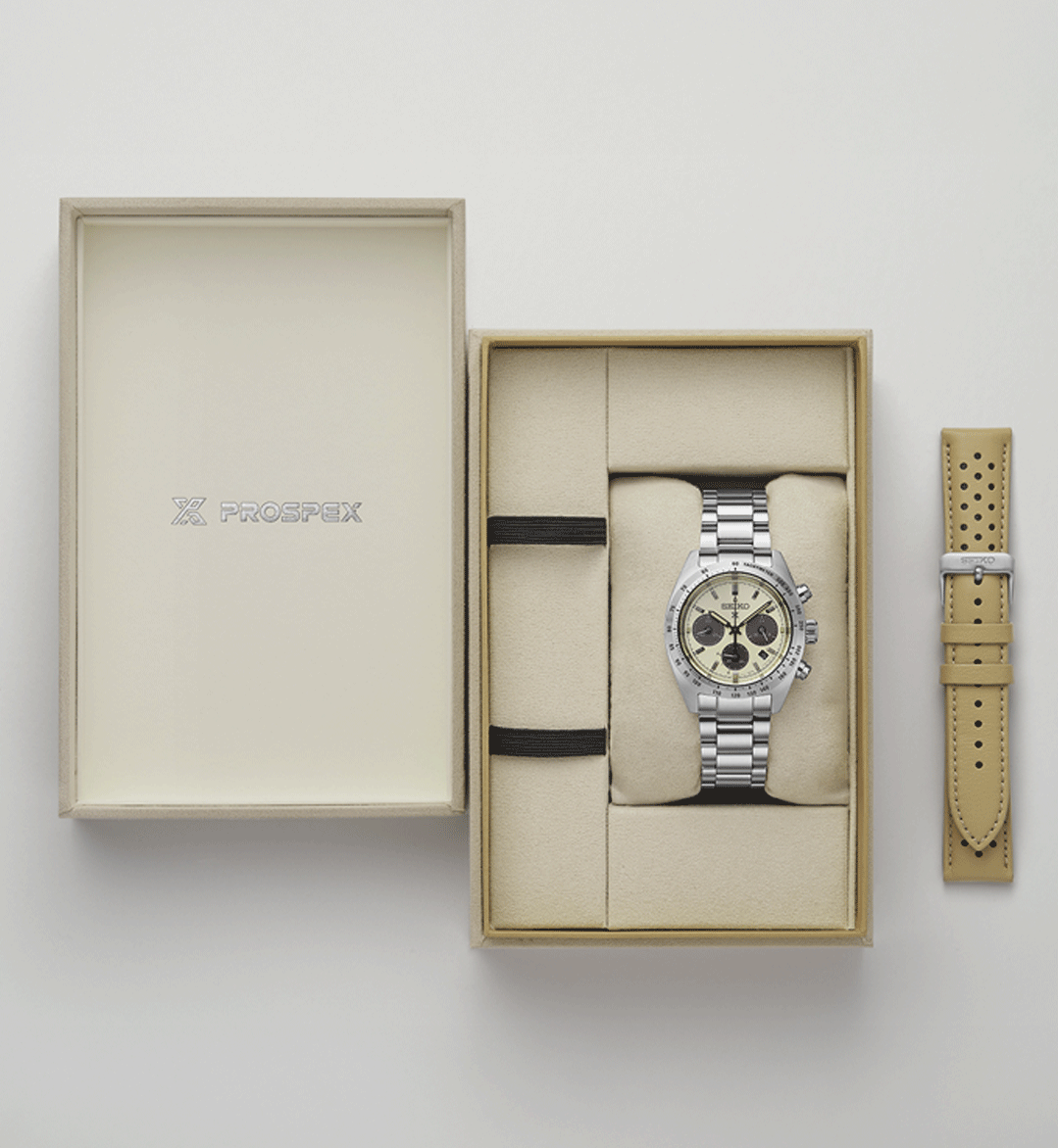 Az óra legszembetűnőbb eleme a számlap színe, amely egy nem mindennapi árnyalat a sportos órák világában. A klasszikus hangulatot erősíti az óra rajongók és gyűjtők körében csak “panda” megjelenésként ismert dizájn, amikor a kronográf segédszámlapok fekete színűek egy világos számlapon, ez az egyik legnépszerűbb színösszeállítás a maga jellegzetes megjelenésével. A tok átmérője 39 mm, amely az újkori, solar kvarc kaliberekkel készülő Speedtimer modellek közül a kisebb méret, ez szintén jól illik a vintage óra megjelenéshez, és a mindennapokban egy kényelmes viseletet garantál, és ezt erősíti a 45.5 mm-es tokfül távolság is. Az SSC959P1 különlegességét és értékét növeli, hogy nem elég, hogy mindössze 2700 darabban készül az egész világon, de mindemellett kizárólag az európai piacon érhető el. Egy ilyen, többszörösen limitált modellhez mindenképpen jár az egyedi körítés is, ezért egyrészt egy saját, színében és hangulatában is az SSC959P1 modellhez illő dísz dobozban érkezik, és az ráadásul tartalmaz még egy ajándék bőrszíjat is az órához, az autósporthoz tökéletesen illő lyukacsos mintázattal készítve.