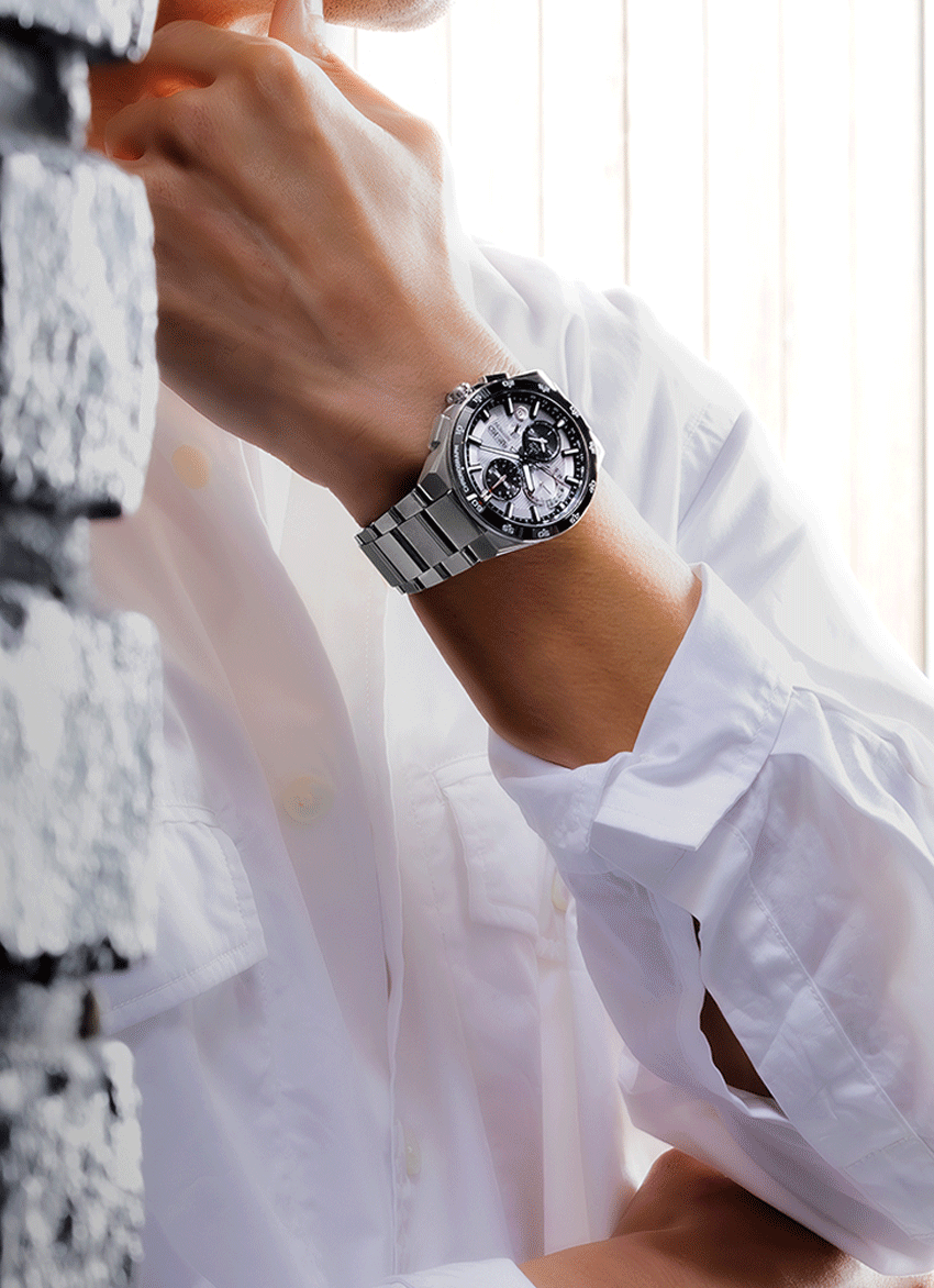 A Seiko Astron neve megjelenése óta egyet jelent a japán high-tech órakészítéssel, legyen szó akár a világ első kvarc karórájáról vagy a legmodernebb GPS Solar kaliberekkel készülő modellekről. Az Astron tervezőmérnökei most ismét emelték a tétet és elkészítették az 5X83 kalibert, amely egyesíti a Dual Time kényelmét a kronográf funkcionalitásával, teszi mindezt rögtön négy új modellel. Az 5X83 kalibernek köszönhetően megváltozott a modell megjelenése, az eddig alul, szimmetrikusan elhelyezett három segédszámlap most kicsit klasszikusabb módon jelenik meg 6, 9 és 12 óránál, így ennek köszönhetően a 100 éves SEIKO logó három órához költözött, így egy kicsit klasszikusabb kronográf megjelenést kölcsönözve az órának, amelynek számlapja egy sajátos, függőlegesen csíkozott struktúrát kapott. A tok és a fémszíj egyaránt titánból készül, ami érezhetően könnyebb a nemesacélnál, így az óra mindennapos viselését is rendkívül kényelmessé teszi. Különleges megoldással, két részből készült az üveg körüli lünetta, a felső része kerámia, az alsó része pedig titán.