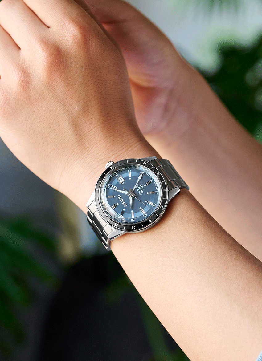 Az SSK009J1 modell megjelenése megegyezik a már jól ismert Style 60’s modellekével. A 40.8 mm-es átmérő a 13.0 mm-es vastagsággal és a domború Hardlex óraüveggel a klasszikus hatvanas évekbeli arányokat idézi, a karcsú, de mégis szögletes tokfülek és a tok kidolgozása is a legszebb hagyományok alapján készült. Az 5 Bar vízállóságú tok oldalai tükörpolírt kaptak, a felső felületek szálcsiszoltak, így az összkép valóban vintage, a kidolgozás, az anyagok és a műszaki tartalom pedig abszolút mai. A Presage SSK009J1 modell számlapjának kékje nehezen besorolható, nem tengerkék, nem is égszínkék, de nem sötétkék - egyedi hangulata a legtöbb viselettel kompatibilis. Az óra érdekessége a két színű lünetta, amely fekete és sötétszürke részekre bontva jelzi a GMT mutató helyét a délelőtt és délután között.